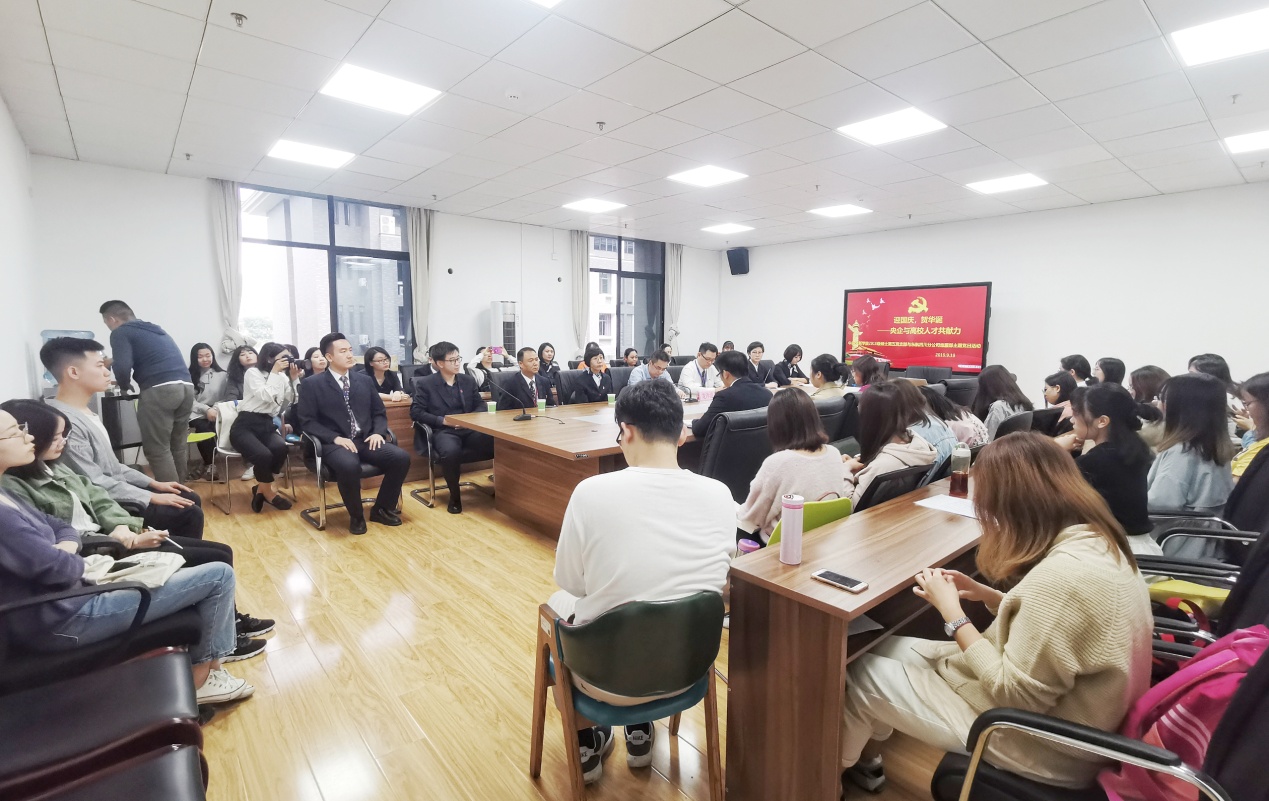 2018级硕士第五党支部和东航四川分公司地面服务部在江安文科楼一区311会议室联合举办此次“迎国庆,贺华诞,央企与高校人才共献力”主题党日活动。参加此次活动的有东航四川分公司地服部党总支书记龙泽道书记及党总支全体党员、东航四川分公司“天府专才”服务后备人才培养计划学员、东航四川分公司地服部新进大学生员工以及樱花文学