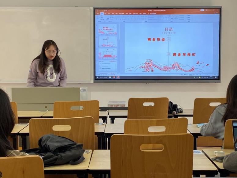 随后,李卓昱同志分享了其收集到的两会热点话题及与我们息息相关的提案,就“关于完善香港特别行政区选举制度的决定”“政协委员建议应届生身份保留延长至5年”“全国政协委员易建强建议研究生扩招”等内容和大家一起讨论,呼吁作为新传学子的我们留意“十四五”规划中提及的关于融媒体建设等实践内容,倡议不断完善和提高自己。
