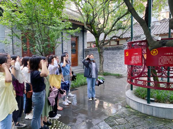 革命英烈事迹陈列馆。细雨中,党员同志们在讲解员的带领下,开启了走进江姐、走进川大革命英烈之旅。