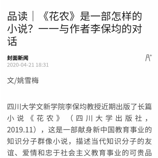 专访 | 李保均教授《花农》创作谈