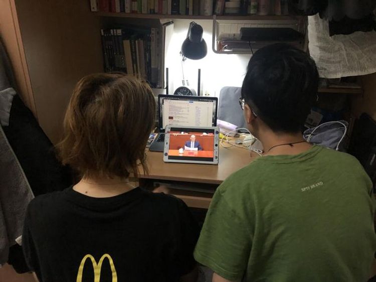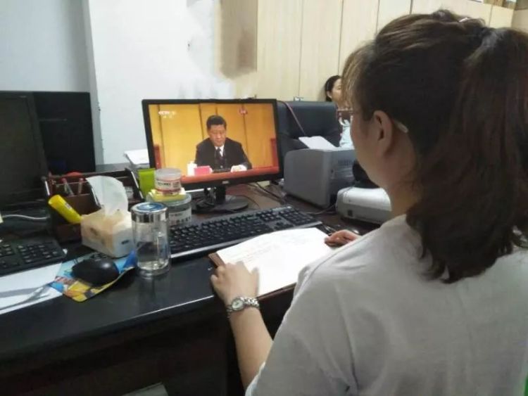 学院党政联席会成员和列席老师收看纪念五四运动100周年大会直播