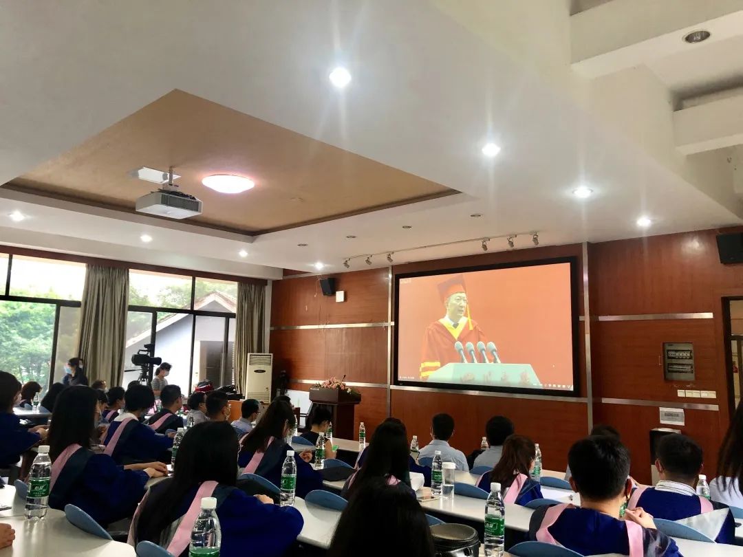 副院长胡易容教授任主持人,学院2020届毕业生代表参加典礼。典礼开始前,在场师生在线观看了樱花文学