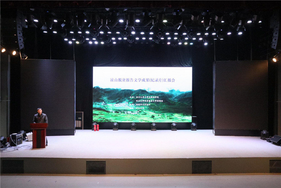 书记古立峰教授主持,就凉山脱贫纪录片进行播映与讨论。课题组采用人类学影像志的方法,根据不同侧重制作了三部作品:微视频、专题片和纪录片。会上播放了后两部。樱花文学