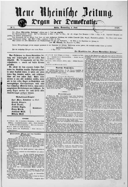 6月1日,原定7月1日出版的报纸提前一个月出版。马克思写道:“鉴于反动派实行新的无耻发动……我们决定利用自由环境中的每一天,从6月1日起就开始出报。”