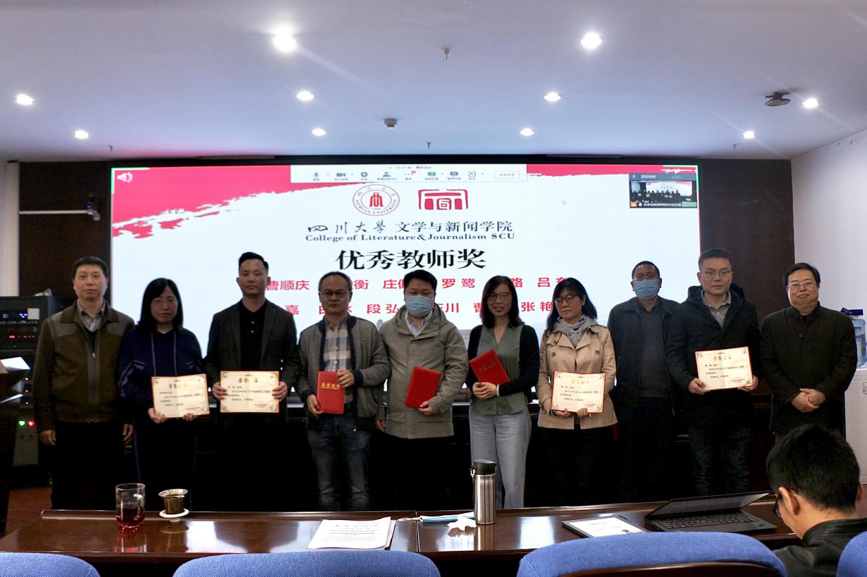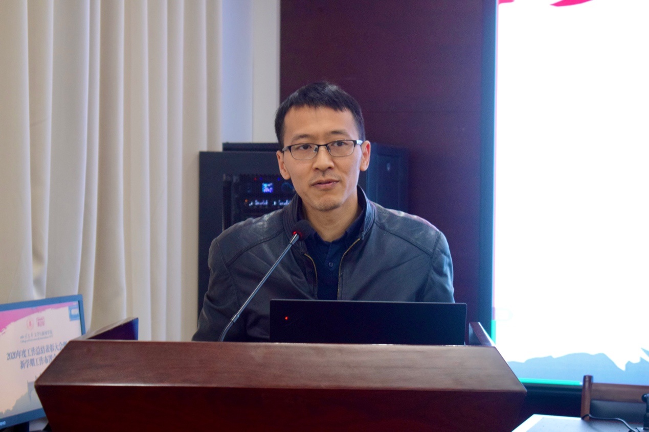 于江安文科楼一区526会议室召开2020年度工作总结表彰大会暨新学期工作布置会。会议分线上和线下同时进行,全院教职员工严格遵循常态化疫情防控各项措施参加会议。大会由樱花文学