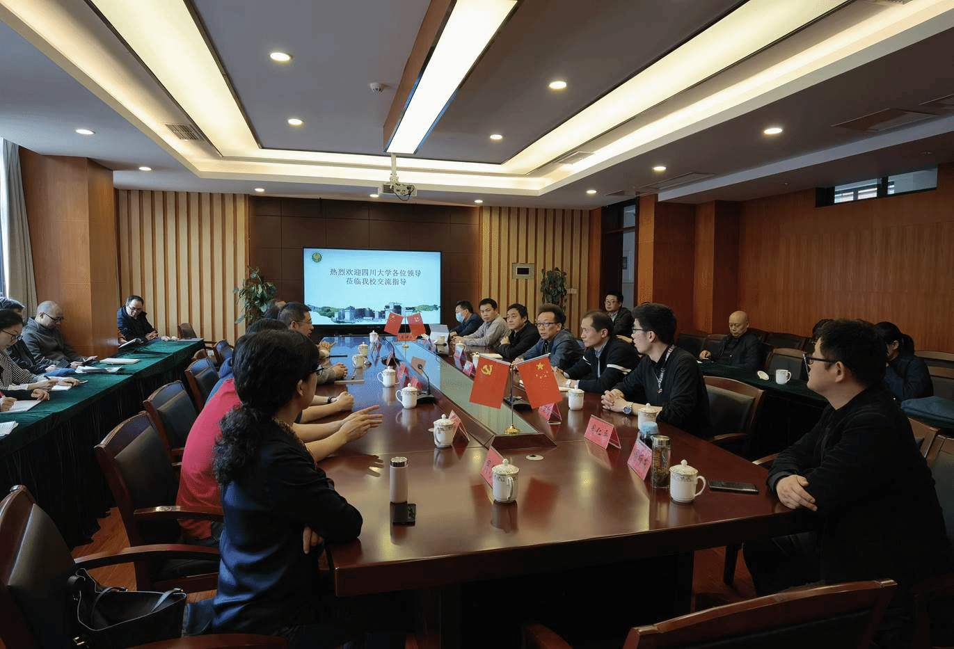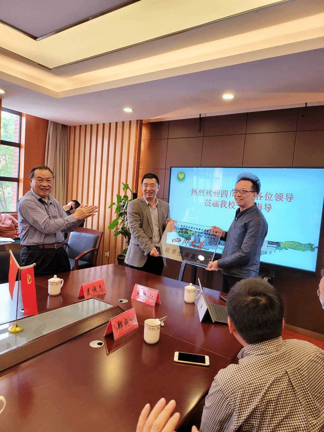 副院长周维东教授、网络空间安全学院副院长杨频教授、软件学院软件工程系主任张意教授,建筑与环境学院副院长兰中仁副教授、生命科学学院生物技术系主任赵建教授、历史文化(旅游)学院副院长鲍成志教授,药学院周乃彤副教授、化学学院副院长郑成斌教授、匹兹堡学院麦诚志教授、华西口腔医学院张倩倩老师等一行15人。