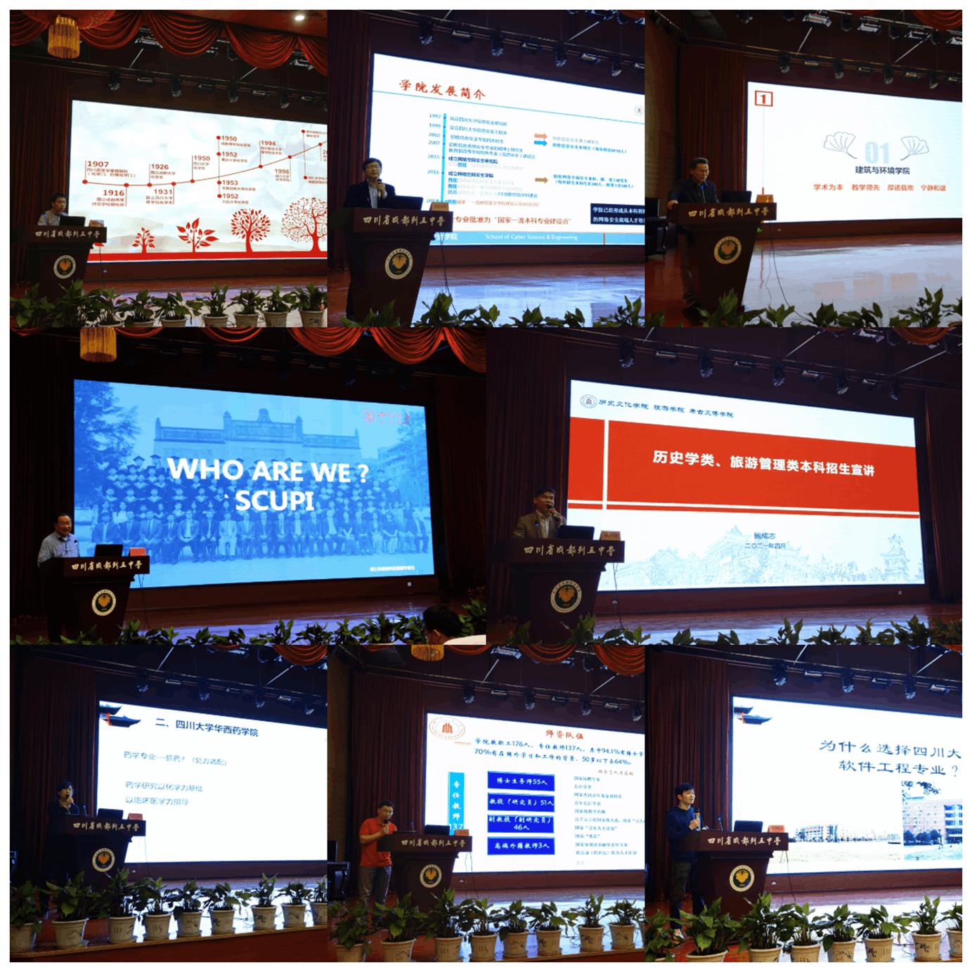 的整体情况、招生政策以及拔尖计划、强基计划等特色项目的开展情况。参加宣讲团的各个学院的副院长或宣传专员就本学院情况及特色进行了招生宣传。