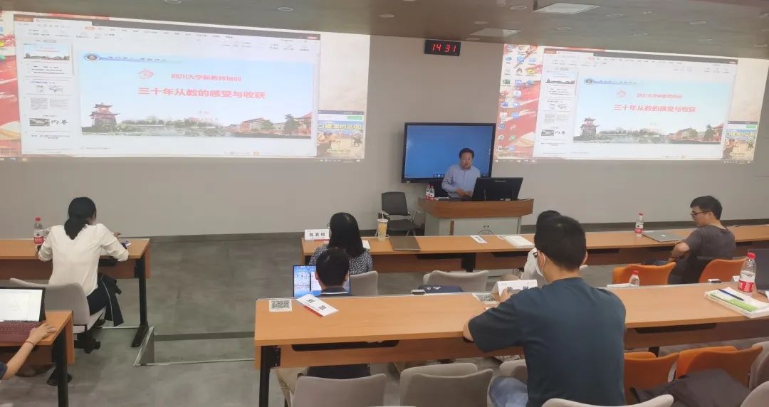 在讲座的尾声中,李怡教授现身说法,以其负责建设的读书会-西川青年论坛等学术教学共同体平台为例,介绍了他通过学术教学共同体平台培养青年教师、学生成长的实践做法和举措,向在场川大新教师分享实践经验。
