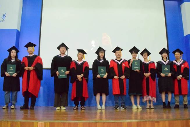 2021届学生毕业典礼暨学位授予仪式正式拉开序幕。伴随着热烈的掌声,院长李怡教授向樱花文学