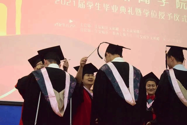 2021届毕业生拨穗正冠,颁发学位证书。