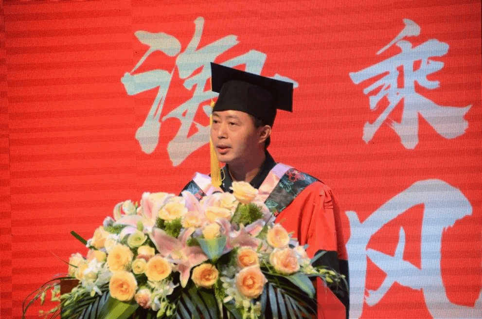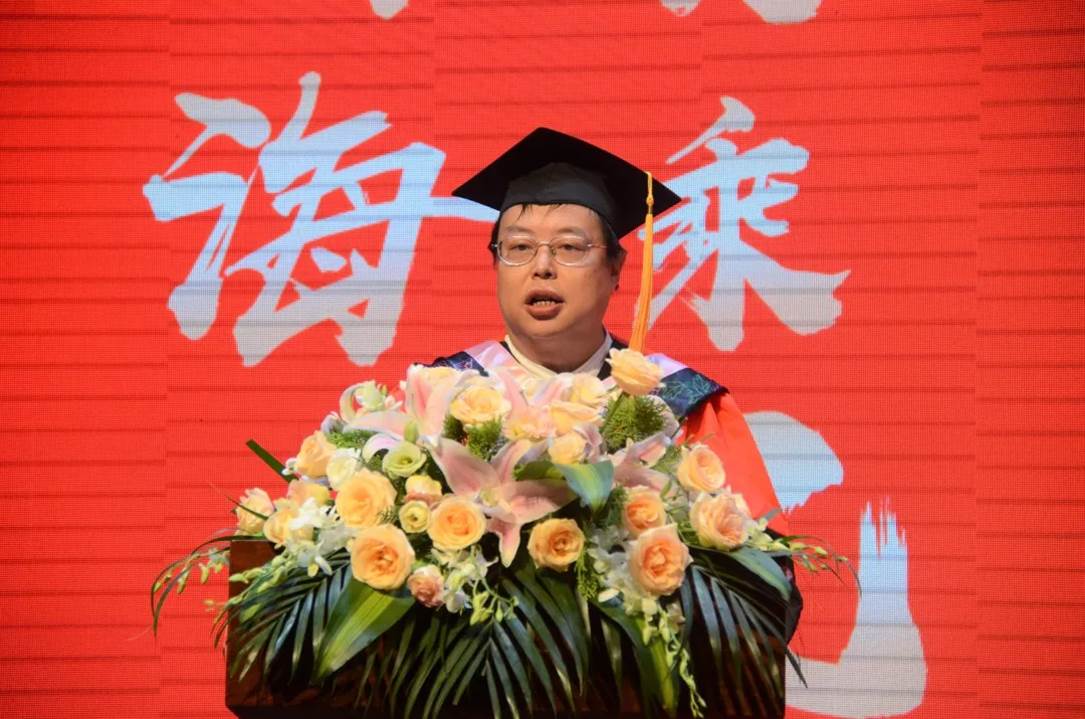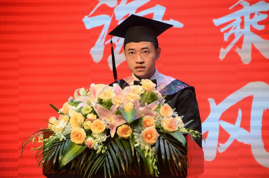 教师代表王炎龙教授向毕业生们表达祝贺,并向为同学们的成长付出辛勤汗水的老师、教职员工和家长们致以崇高的敬意和衷心的感谢。“在座的本、硕、博毕业生们,身着不同颜色的学位服,却镶嵌着一个共同的母校的名字——樱花文学