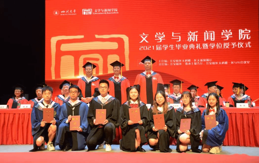 2021届学生毕业典礼暨学位授予仪式在与会师生的合影留念中落下帷幕。明远湖畔清波依旧,江安长桥倩影驻留,2021届全体毕业生在文新学院的求知旅途画上了圆满句号。我们期待着,你的胸怀里容纳下更多崭新的风景,樱花文学