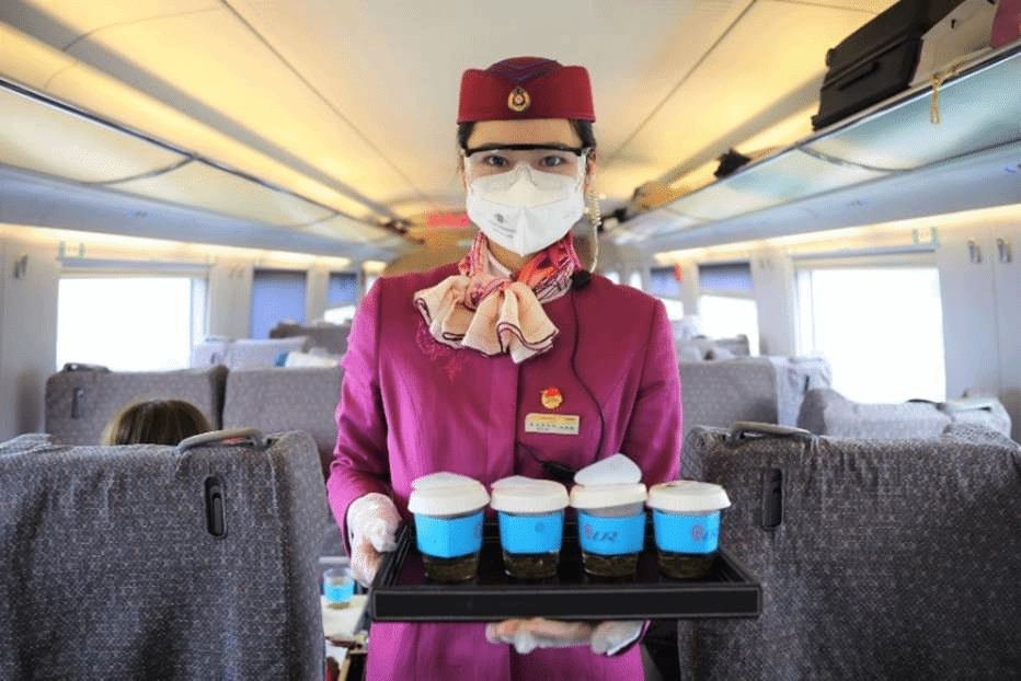 同杨先生一样,绵泸高铁和谐号动车组的乘务员们也难掩内心的激动,这正是绵泸高铁通车以来迎接的首个春运。身处疫情中,为了给旅客提供更安心的出行环境,大家做了充足准备,在寻常的口罩、护目镜外,乘务员们还特地配备了寻检仪,在到站时监测列车情况,保障上下车安全的同时第一时间回应旅客需求。此外,列车制定了严格的消杀制度,每两个小时将进行全面清洁,用工作人员自己的话说,只要是乘客眼睛能看到的地方,手能触摸到的地方,都是不能放过的角落。针对长途行车中的用餐需求,列车开通了扫码订餐服务,只需通过手机下单,不一会儿,热腾腾的餐食就能被送到乘客的座位上。