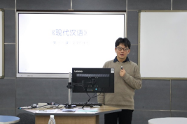 副院长罗鹭教授主持。首先,他介绍了本次比赛的评委,评委团由学院党委书记古立峰教授、院长李怡教授与王红教授、丁淑梅教授、李果副教授、妥佳宁副研究员组成。随后,罗鹭副院长讲解了赛制和评分规则:每位参赛教师有15分钟的授课时间和5分钟的互动提问时间,比赛顺序由现场抽签决定。评委依据参赛教师讲课的内容设计、讲课方法、讲课效果,按照百分制综合打分,最后取平均分作为参赛老师的最终得分。