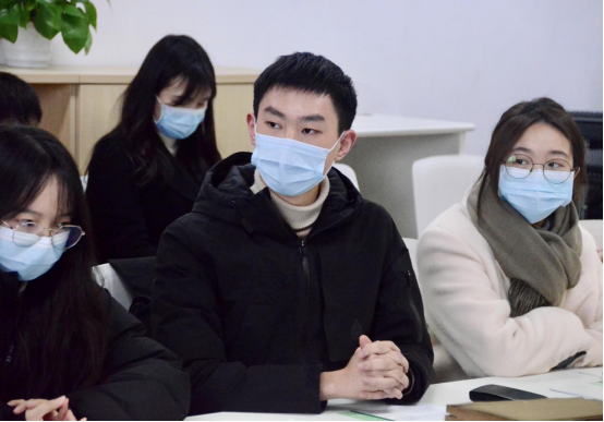 2019级汉语言文学拔尖班班长宋晨对班级过去一学期的学习生活情况作汇报。他在发言中说,进入大三学年的秋季学期后,班级同学的学习生活进入了平稳期与拔高期,也取得了一定的阶段性成果。在学业方面,大三秋季学期班级多位同学绩点达到3.8以上,班级总体平均分达到了90分。在科研方面,同学们依托学院举办的“第一届本科生创新拔尖人才学术论坛”“一流专业、拔尖计划、强基计划学生学术创新论文征文”等活动开展交流学习,并得到“杨明照古籍特藏室”等学习资源支持。据宋晨同学介绍,拔尖班全体同学都参与了“大学生创新创业计划”的申报活动,做到了人手均有立项。同学们在导师的带领下,立志在学术的道路上不断探索。在社会实践方面,同学们参加了“从师擎旗,青阳承颢”慰问退休教职工志愿活动、寒假托管班级服务志愿活动、“五心支部”寒假调研等实践活动,在平衡课业的情况下积极拓展自身综合素质。