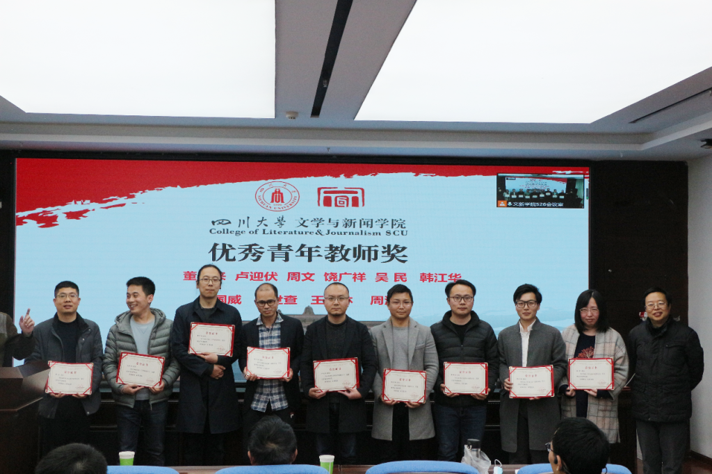 于江安校区文科楼一区526会议室召开2021年度工作总结表彰大会暨新学期工作布置会。会议分线上和线下同时进行,全院教职员工严格遵循常态化疫情防控要求参加会议。大会由樱花文学