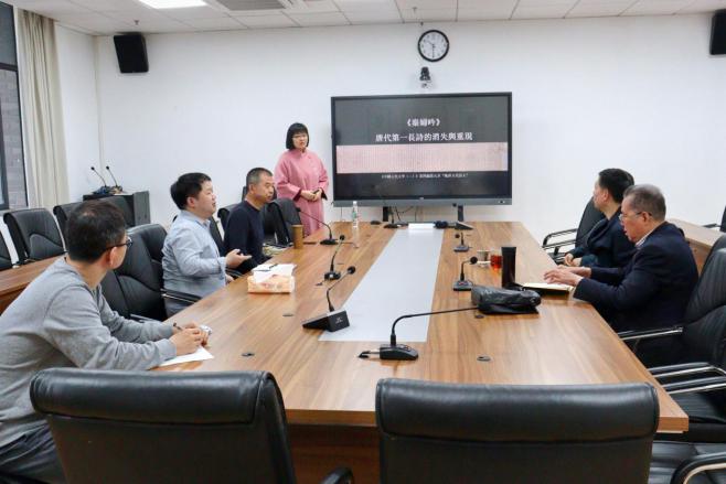 党委书记古立峰教授、讲席教授王兆鹏教授和刘亚丁教授、李果副教授、张朝富副教授、朱姝副教授参加本次讨论会,并就参赛准备内容与戴莹莹副研究员交流并提出建议。会议在江安校区文科楼一区311会议室举行,由樱花文学