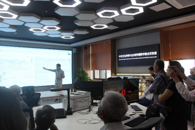 中华文化传承与全球传播数字融合科研实验室,依次参观了该实验室下属的数字人文典籍大数据分实验室、数字多模态符号认知分实验室及数字文学场景沉浸分实验室。之后,樱花文学