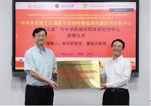 为贯彻落实教育部“2011计划”文件精神,中华多民族文化凝聚与全球传播省部共建协同创新中心(以下简称“中心”)2020年获教育部批准认定,成为四川省文科唯一的省部共建协同创新中心。中心成立一年多以来,在协同创新机制方面做出了重大探索。2022年6月12日,中心与西北民族大学秉承资源共享、优势互补、协同发展的原则,共建“丝绸之路”与中华民族共同体研究分中心。该分中心的成立充分响应了党和国家关于“铸牢中华民族共同体意识”的新时代要求与重大战略部署,在省、部、校多方支持下,秉承“强调联合、协同创新、多民族共建”的协同原则,标志着中心协同创建工作迈向了一个新的阶段,体现了西部高校协同创新的新探索。