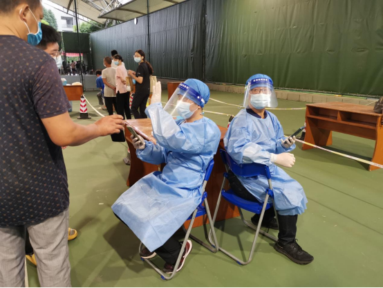 朱至刚、邱树雄、高树博、王长林、骆世查、陈羲、段化鞠等7位教师党员前往江安校区网球场核酸检测点协助完成第一轮全员核酸,负责现场人员组织和检测信息录入等工作。