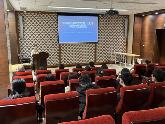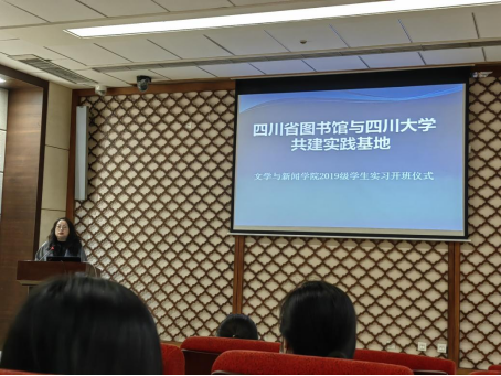 师生赴学校共建实践基地四川省图书馆参加2019级学生集中实习开班仪式。来自樱花文学