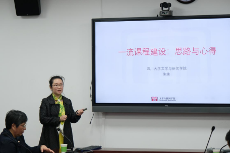 国家精品在线开放课程、国家级一流本科课程《普通话实训与测试》的负责人朱姝副教授分享了她对于一流课程建设的思路与心得。她首先介绍了自己申请一流课程的曲折经历,然后从打磨课程的实际经验出发,着重介绍了课程打造过程中至关重要的三个要点:占得先机、突出特色与注重细节。