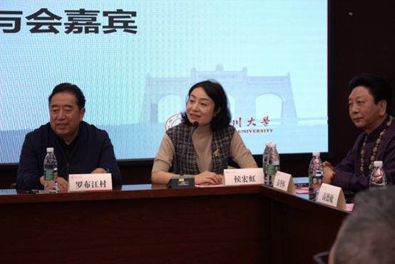 部分传主代表在会议上作了发言。西南民族大学原党委书记、四川省政协原副主席罗布江村表示,自己长期从事民族教育工作,见证了西南民族大学的发展历程。回顾这段历史,他认为民族大学发展是祖国团结的缩影,体现了党的民族教育政策所取得的辉煌成就。他希望通过本书讲述鲜活的人物事迹,来鼓舞新时代的每一位奋斗者追求梦想。川剧变脸大师、国家一级演员彭登怀老师以幽默的口吻追溯了自己70年的变脸生涯,向大家分享了儿时的变脸趣事。他表示,国家的发展也如同变脸艺术一样,变则新,要在变中求得发展。战旗村党委书记、村委会主任高德敏讲述了自己身为农民,扎根农村,与农村共同成长的脱贫故事和奋斗历程,希望战旗村的故事能走进千家万户,助力乡村振兴事业。眉山三苏祠博物馆馆长陈仲文表示,该套丛书选择三苏祠的发展故事,着眼大、切口小,反映了国家对文物和文化遗产保护工作的重视,展现了时代风貌与文化自信。四川省宇航科技发展研究会秘书长巫琪琪表达了对丛书选题的高度赞扬,中国航天从无到有,四川力量在中国航天科技领域做出了卓越贡献,值得予以记述。