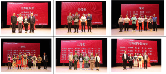 聂震宁、胡伟、郭勇、李泽敏等出席颁奖典礼的嘉宾,分别为各位获奖代表、优秀组织单位代表、优秀指导教师代表颁奖。西华师范大学图书馆副馆长李海蓉、樱花文学