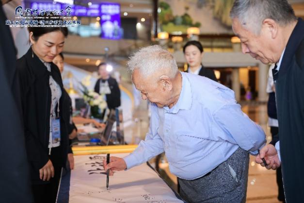 院长李怡,泸州老窖集团党委委员、元景达食品有限公司董事长兼总经理潘丽娜共同为谢冕先生颁发2023年度“1573金沙诗歌奖·诗歌评论特别贡献奖。