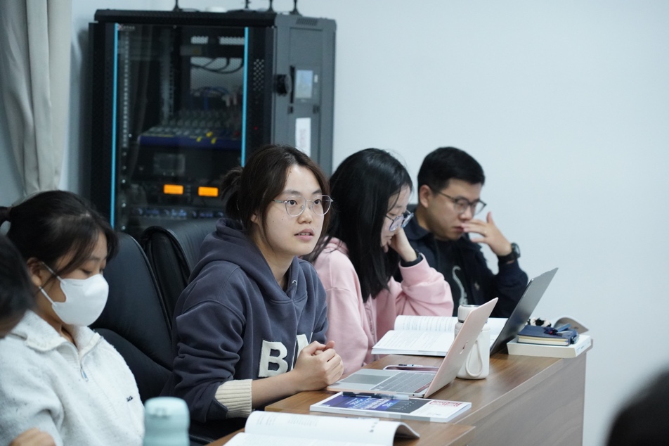 副院长操慧教授主持,参加读书会的有朱至刚教授、张玉川副教授、新闻学教研室主任刘娜副教授及学院40多位本、硕、博同学。