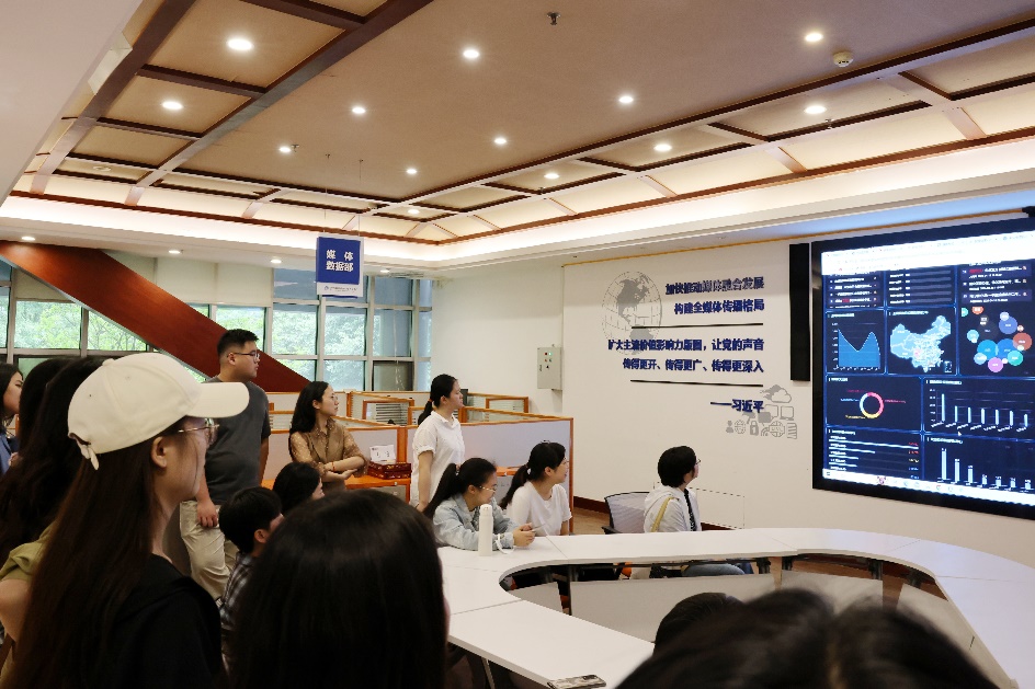 师生依次走进新华网、新华社新闻信息中心四川中心和党建长廊参观,亲身感受新华社四川分社记者的办公环境、舆情系统和融媒专线等媒体数据新技术以及社内的党政宣传工作。