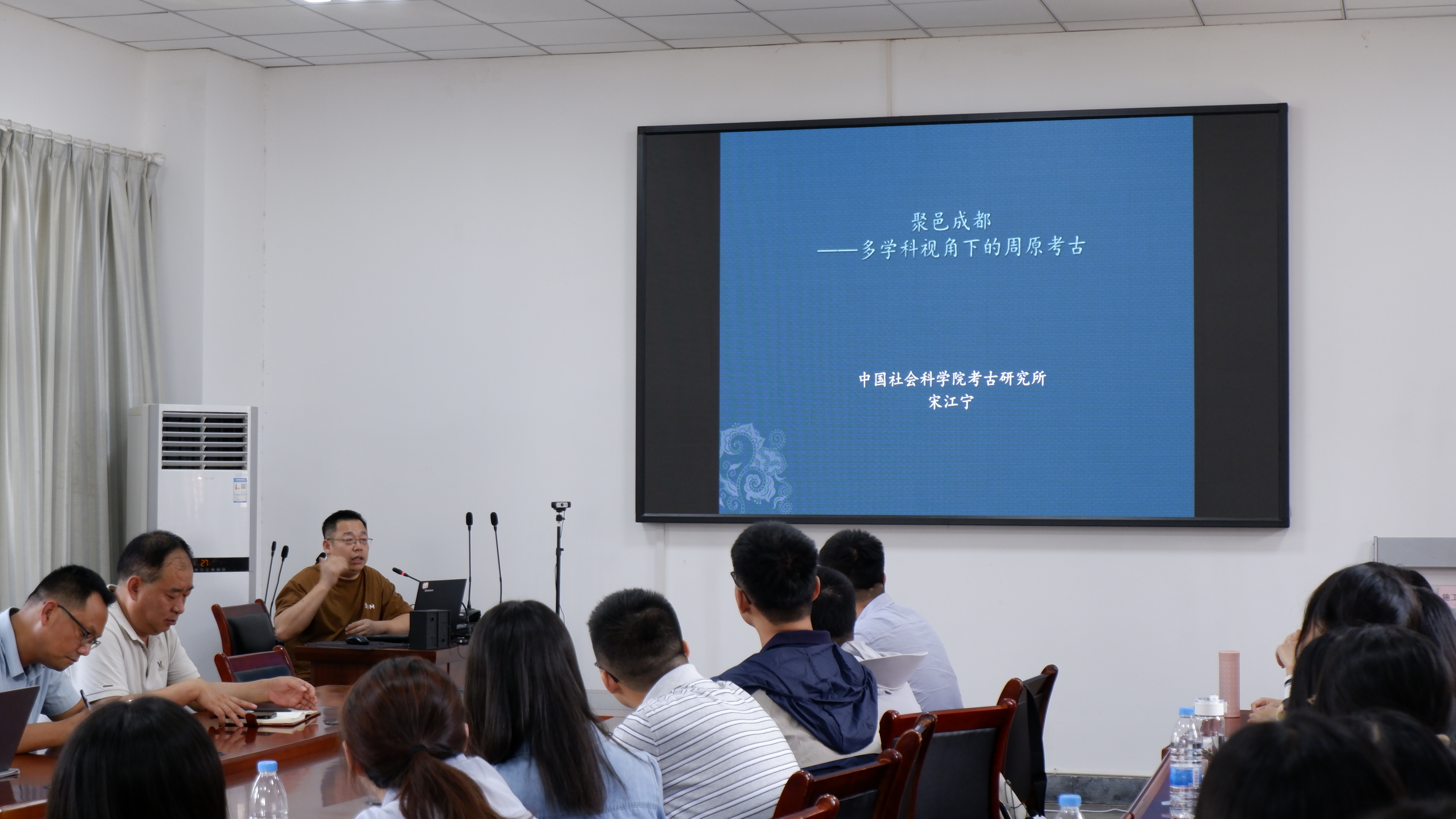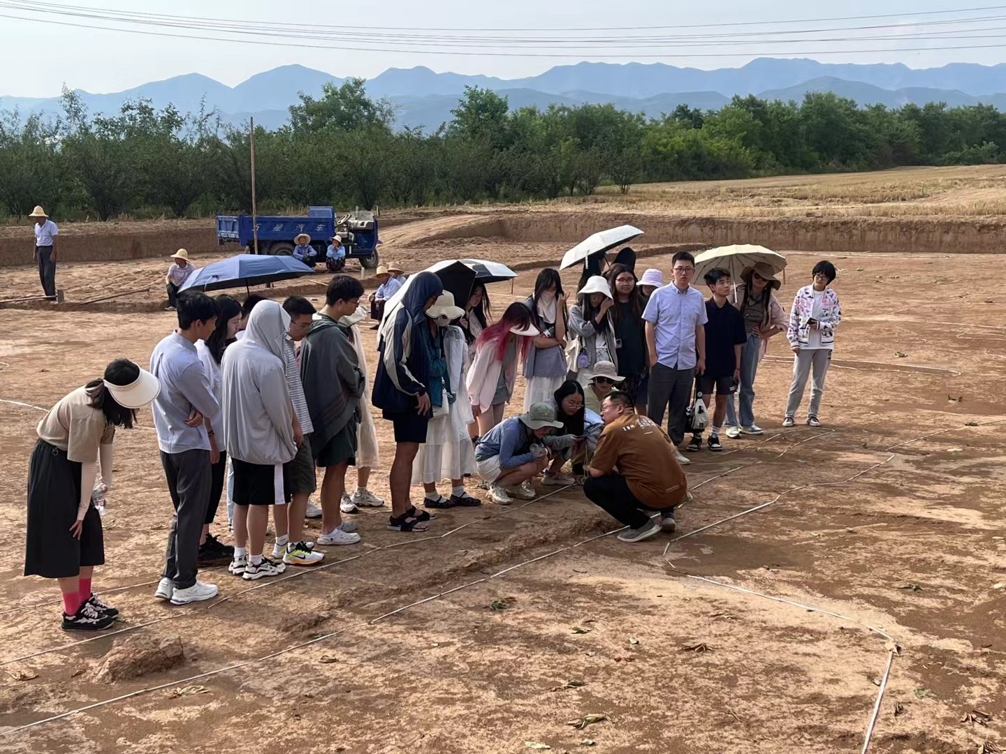 7月2日上午,同学们乘车前往宝鸡参观周原遗址,聆听了中国社会科学院考古研究所宋江宁研究员的主题讲座。宋江宁研究员以“聚邑成都·多学科视角下的周原考古”为题详细地为同学们讲述了城市聚落分布、水利工程、山川河流、人文工程对周原遗址的影响。讲座最后,宋研究员重申了考古学的价值与地位,指出考古是多元并融的学科,涉及到历史学、政治学、经济学、建筑学等各个方面的内容。讲座过程中,同学们积极提问,与宋江宁研究员展开了深入交流。7月2日下午,师生一行登上岐山,从高处俯瞰八百里秦川,设身处地地观察地形地貌,深刻感受周原文化。随后大家来到考古现场,参观了周原考古遗址以及发掘现场,考古队员给同学们补充介绍了有关田野考古的部分知识,让同学们受益匪浅。