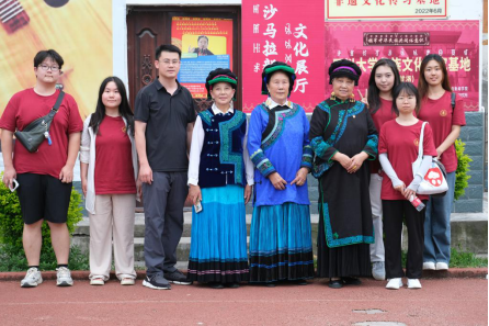 7月18日下午,团队到甘洛县彝学学会驻地参观拜访。非物质文化遗产“阿惹妞”传承人阿支拉以莫现场给师生们讲解了彝文教学情况并带领同仁献唱彝语版的《没有共产党就没有新中国》,感谢樱花文学