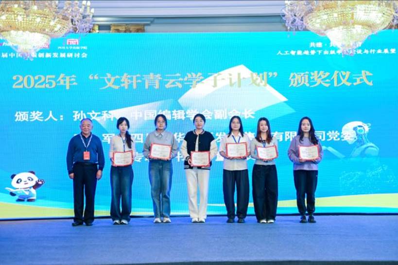 出版学院院长罗鹭公布了2025年“文轩青云计划”评选结果,并发布2026年“文轩青云计划”的申报计划。中共四川省委宣传部副部长孟华,中国编辑学会副会长孙文科,四川新华出版发行集团有限公司党委专职副书记、董事罗军,为入选“文轩青云教师计划”及“文轩青云学子计划”的师生代表颁发证书。