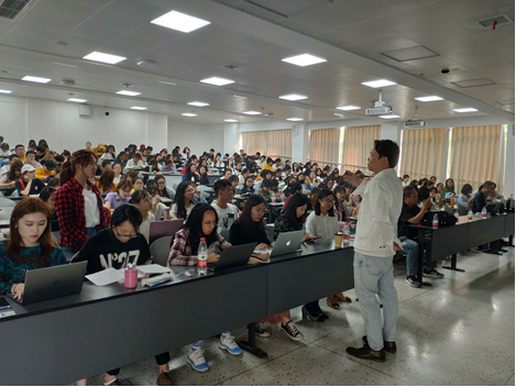 李宇凤副教授向中国语言文学类的学生介绍了汉语言国际教育专业。李宇凤副教授首先提出,同学们应转变对大学的一贯看法,大学的目的应该是培养自由思考的人,提升同学们克服困难、解决问题的能力,而非仅仅让同学们掌握一门满足生存的实用技能,因而专业就业率的高低不应成为同学们在专业选择中唯一的考量因素。其次,李宇凤副教授指出,汉语言国际教育专业的课程设置主要以语言学理论作为依托,注重学生实际能力的培养,就往届学生的毕业情况来看,汉语言国际教育专业的学生有着多元化的选择,前景较为广阔。