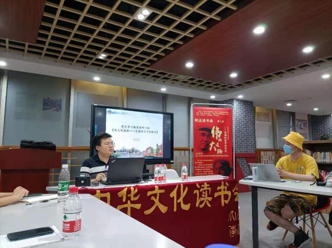 读书会上,胡余龙老师分别从文学性、历史性、思想性三个维度对《伟大的道路》进行综论,引导同学们慢慢打开这部作品。紧接着,他介绍了作者创作、修订、出版这本书的心路历程,并且以之为线索,带领同学们解读这本书的创作动机和主旨。在此基础上,胡老师通过文本细读帮助同学们感受朱德的成长历程、性格特征、历史贡献等。胡老师总结道:“中国人自古就有着‘家国同构’的文化传统,正是因为有无数国人像朱德这般舍小家、保大家,为实现中华民族复兴而不懈奋斗,我们的祖国方能自弱而强,屹立于世界民族之林!”