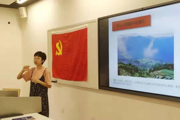 比较文学与世界文学专业的夏甜和孙铭蔚分享了两组摄影作品,并表达了她们对祖国美好风光、优秀文化的喜爱以及对祖国未来繁荣发展的衷心祝愿。语言学及应用语言学专业的赵珊榕同学带来一幅今夕二十年对比图,记录着家乡从二十年前“红砖低瓦泥泞路”到如今“鳞次栉比楼房连通途”的巨大变化。文艺与传媒专业的宋佳芮同学详细介绍了家乡元阳的梯田,她感叹道:“元阳梯田从原来的以自然经济作业为主发展为以旅游业为主,是世世代代哈尼族人共同创造的杰作。”