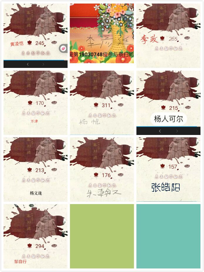 各年级同学纷纷响应倡议,或在家中参与全国默哀活动,或前往中华英烈网、中国文明网、“青春川大”公众号等平台进行网上祭扫,表达自己对历史革命英烈、建设英烈、防疫英烈、救火英烈等英雄人物的哀悼与纪念:2017级吴海纳同学在祭扫平台中写到“地收不尽生的情致,地收去的只有泥胚”;2018级向宇歌同学感慨道,“举国共殇,祀我同胞,哀抗疫之英灵,悼前线之烈士,生命有时逝去,唯善与美得以永存”;2019级马林君同学说,“哀悼在这场灾难中罹难的普通人,哀悼为了更多人的安全拼搏而不幸牺牲自己性命的英雄。”一份份哀思化作激昂有力的文字,承载着学生们对无数英烈的敬佩与赞扬。