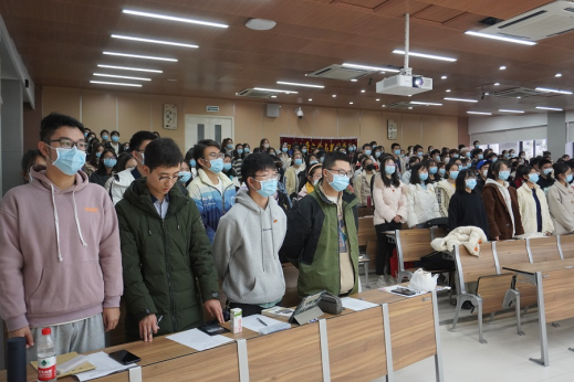 学院委员会2021-2022学年团校第二次行课正式开始,全体同学起立齐唱团歌。