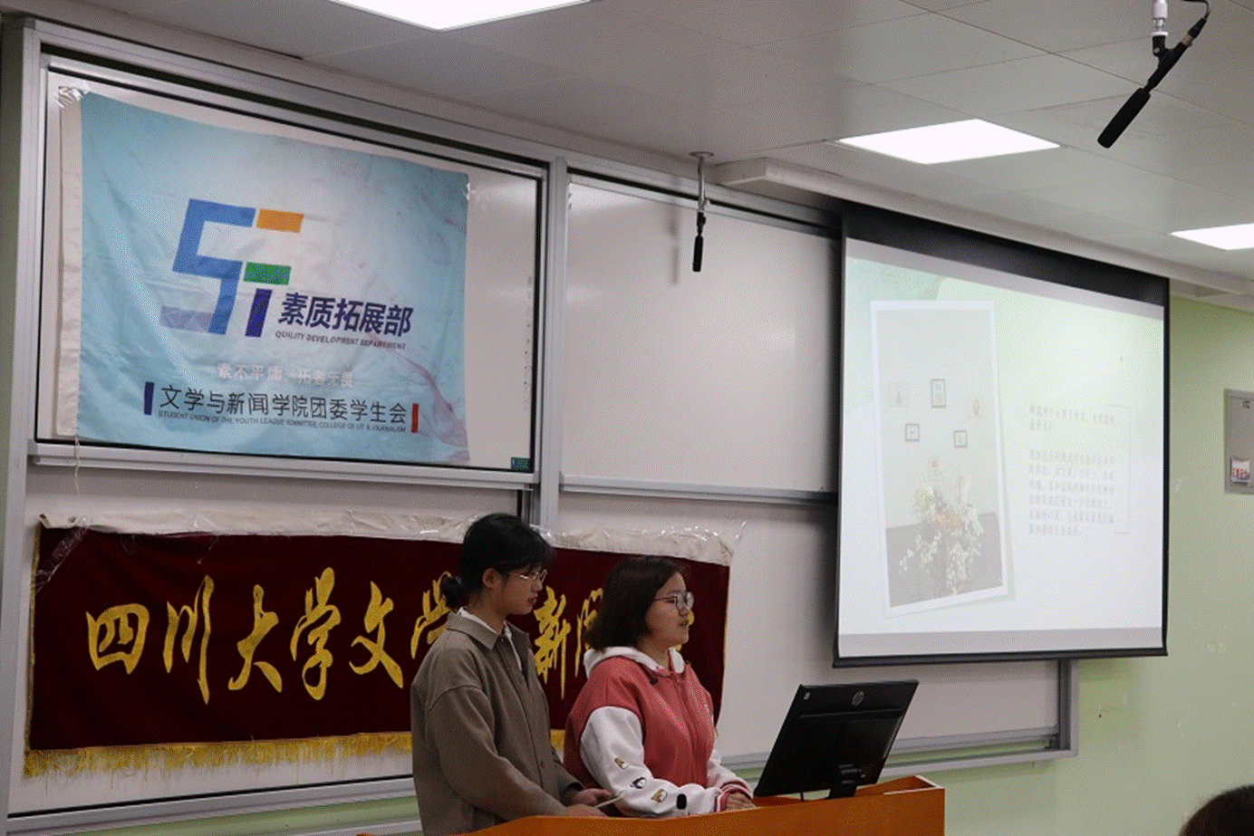 2021年“四海同舟,室雅兰香”寝室文化节在江安校区第一教学楼B座107教室顺利举行。2021级实习辅导员郑格老师、兼职辅导员杨一雄老师出席活动,樱花文学