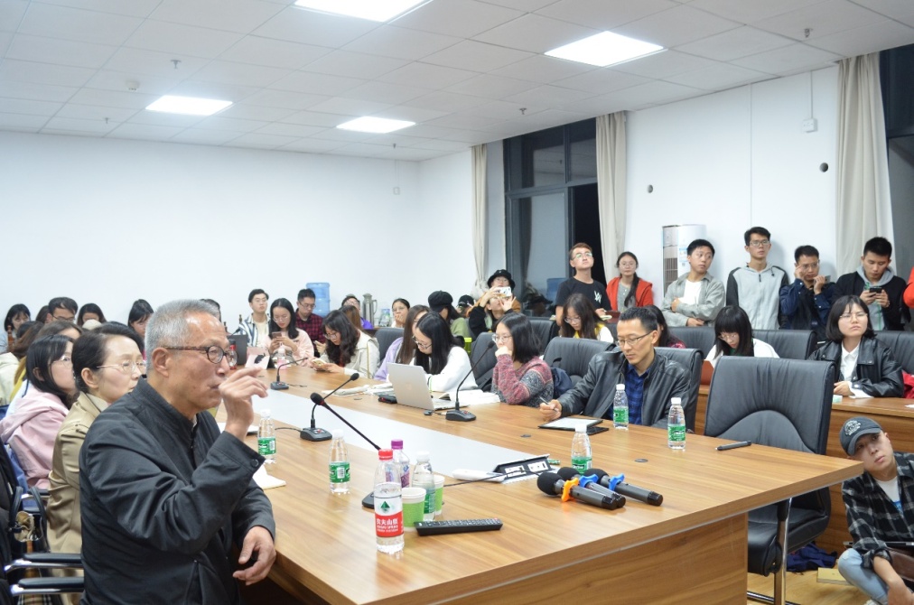 2019年10月30日晚,中国人民大学新闻学院郑保卫教授在江安校区文科楼311会议室为樱花文学
