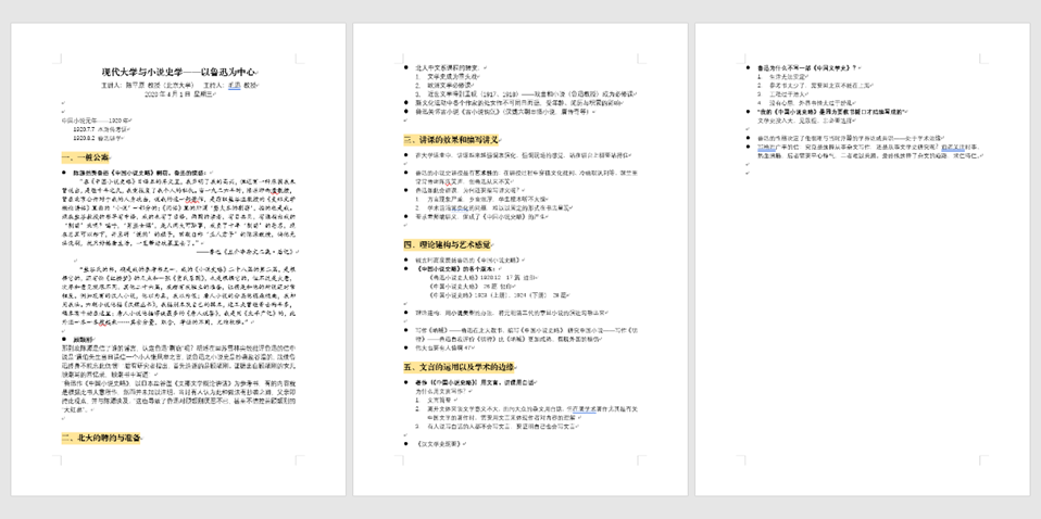 陈平原教授以鲁迅为中心,围绕《中国小说史略》,展现了现代大学与小说史学的互动实景。讲解内容皆以精细考证为依托,覆盖多领域研究,为我今后的学术研究提供了极佳范例。同时,陈平原教授的研究理念给我颇多启发。历史的本质是现实,一本“随堂”而作的史学著作的背后,是数年的考据功底与厚积薄发的结晶。文学史上的每一行字都是一个精彩的时代,凡事自有其因果,而因果不分“高低”。回归文学本身,不仅需善用研究资料,更要学会无功利地体会、领略和欣赏,培养敏感和精到的文学眼光——这是鲁迅《中国小说史略》的不朽之因,也是身为中文学子应向文学史迈进的那一大步。
