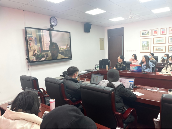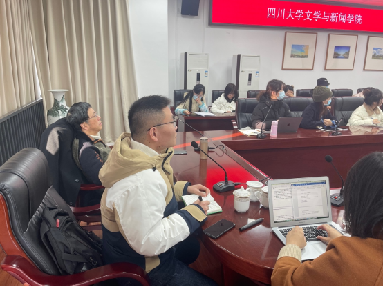 周裕锴教授、戴路副研究员、陶熠老师与40多位同学在江安校区文科楼1区418会议室集中收看陈琳琳老师的在线讲座。这是由樱花文学