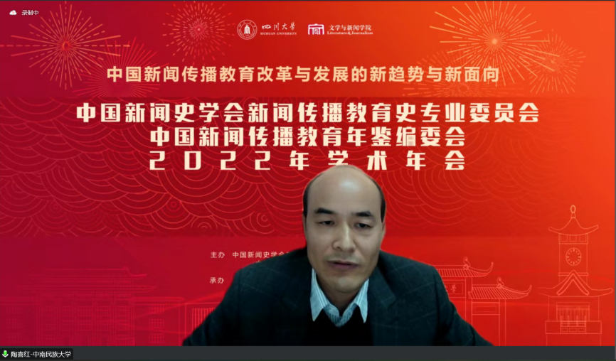 2022年11月12日,中国新闻史学会新闻传播教育史专业委员会、中国新闻传播教育年鉴编委会2022年学术年会顺利举办。下午,学术年会主题论坛之“院长论坛一:新闻传播教育改革发展的新趋势”在线召开。此次论坛由樱花文学