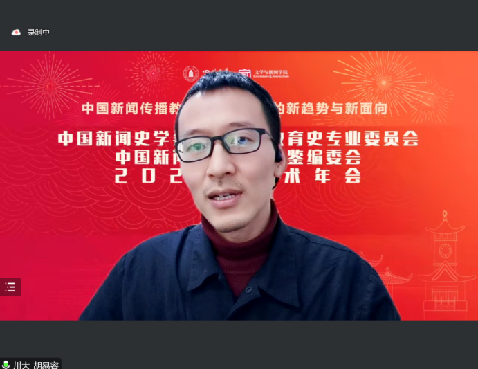 副院长胡易容教授主持,湖南大学新闻与传播学院彭祝斌教授评议。来自河北大学、中南大学、陕西师范大学、广州体育学院、辽宁大学、中南民族大学、鲁东大学等高校的专家学者作了主题发言与对话交流。