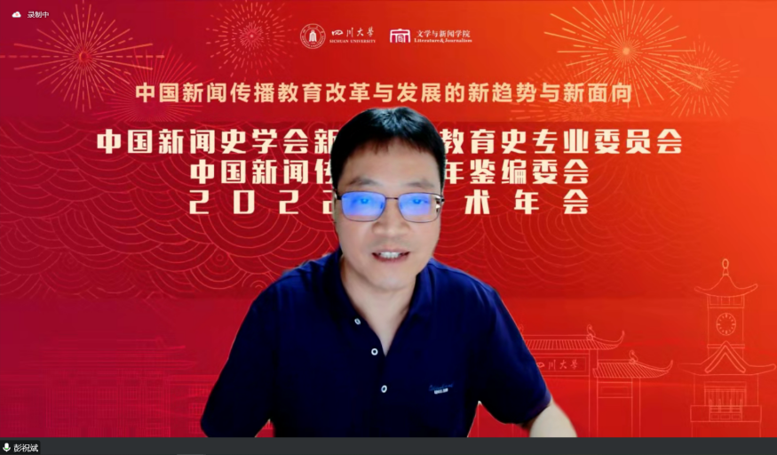 主题发言结束后,湖南大学新闻与传播学院彭祝斌教授进行评议。他认为参会嘉宾的主题发言内容丰富,精彩纷呈,既展示了其躬身实践的经验智慧,也为透视当下新闻传播教育的现实图景提供了多元视角。在新技术发展与传媒生态发生革命性变化的背景之下,他进一步指出,新闻传播教育应当就如何契合新文科人才培养要求,如何建造数字化时代的学科体系和知识体系,如何服务中国式现代化建设等问题进行深入探索与实践。