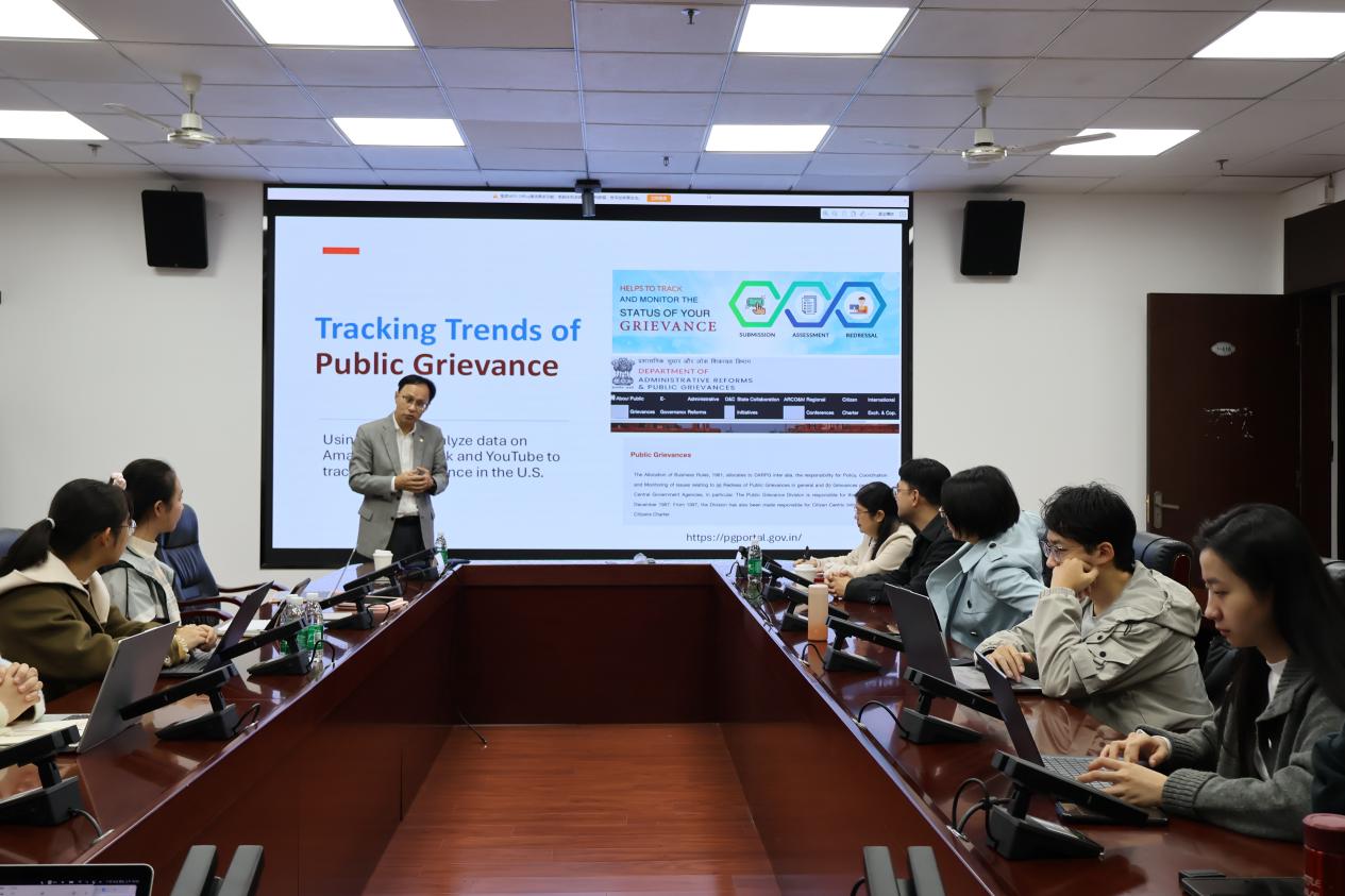 钟布教授从近期国际热点切入,提出社会科学学者应该更多观察现实生活,并从中寻找研究问题。他结合已有研究,阐释了如今人们存在的焦虑存量问题,并据此展开关于“Public grievance”的讨论。同时,他还与大家分享了近期有关亚马逊的研究,该研究基于用户数据的分析总结了人们的消费行为特点,并预测了目标人群的关键决策。
