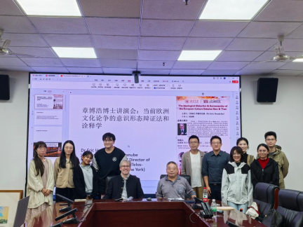 成功举办以“当前欧洲文化论争的意识形态辩证法与诠释学”为题的学术讲演会。本次讲演会特邀荷兰社会学家、匈牙利多瑙研究所研究员艾瑞克·亨德里克斯博士主讲。博士生陈振鹏全程英文主持。讲演会吸引了博士生和国际留学生的积极参与,现场交流气氛热烈。