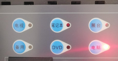 如需要使用笔记本电脑投屏使用,将此HDMI接口接入笔记本电脑,然后将中控操作台的笔记本标识按钮按下,让其旁边的红灯亮起即可正常使用。