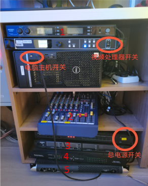 注意:音频设备12345的电源不需要手动关闭,电源时序器会自动关闭音频设备电源。